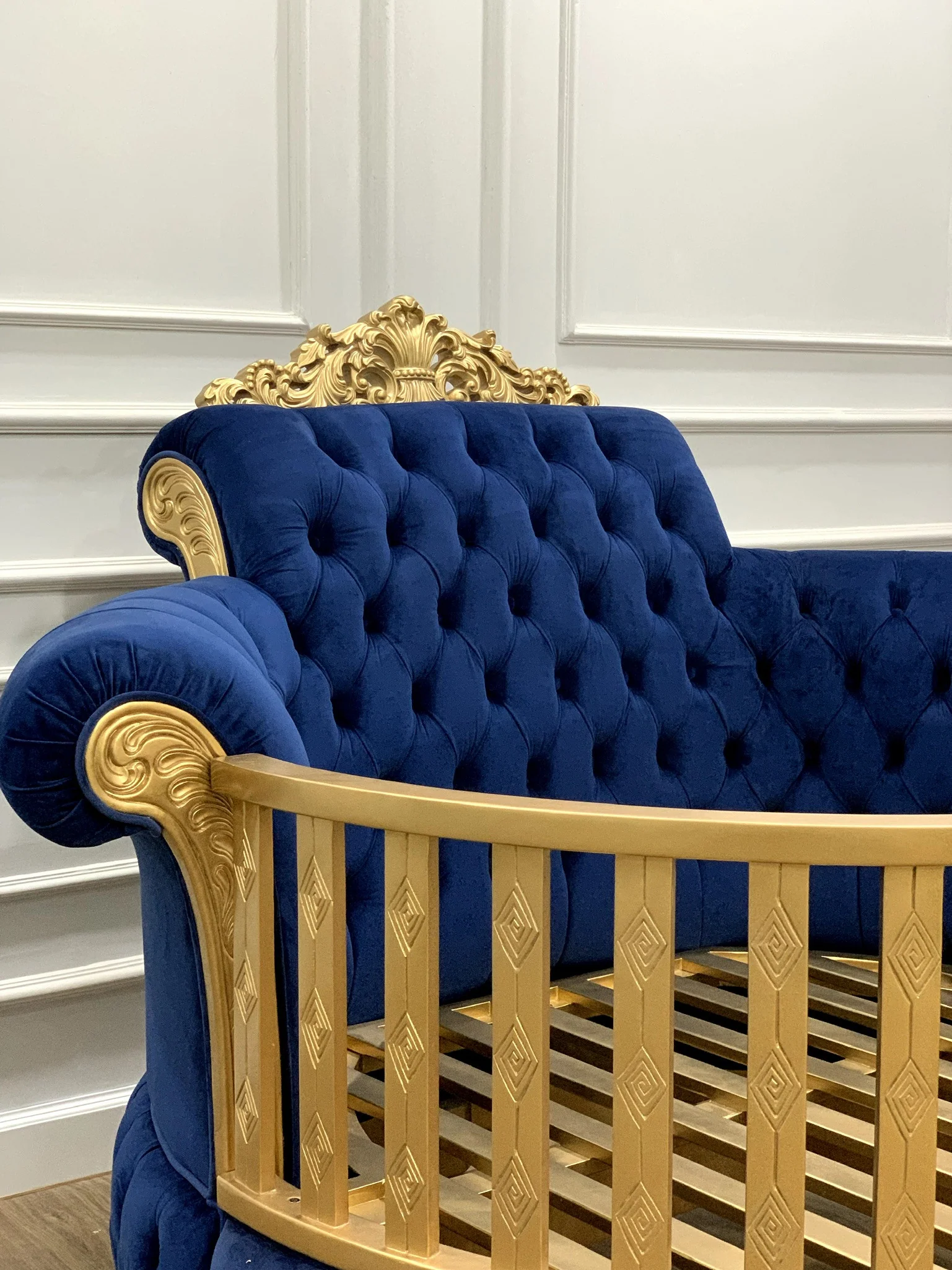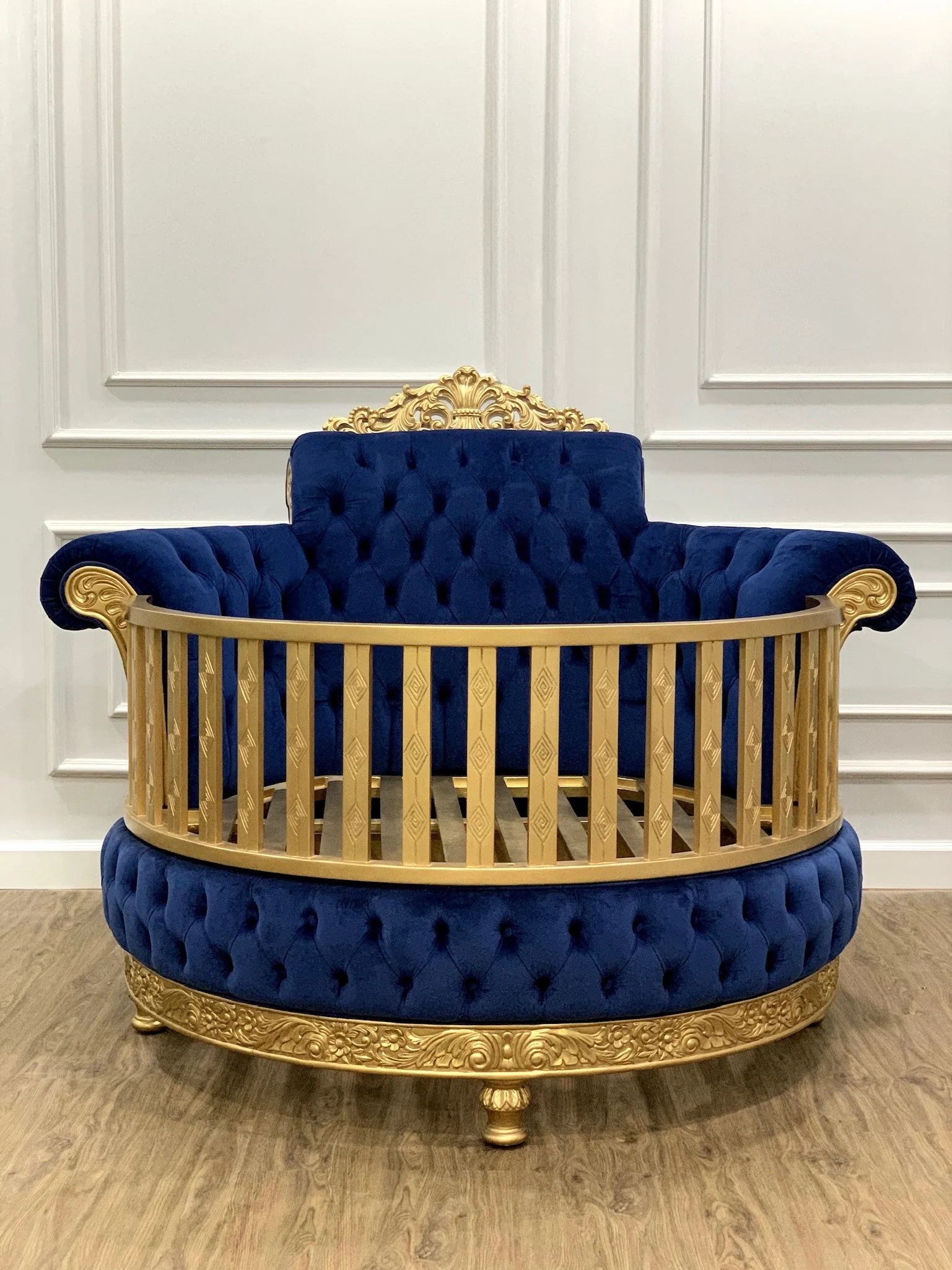 With the Quinn cot you get a totally different look! An oval shaped cot (mattress included) with a sofa style back which creates a stunning design but also a cosy resting place for your little one.
