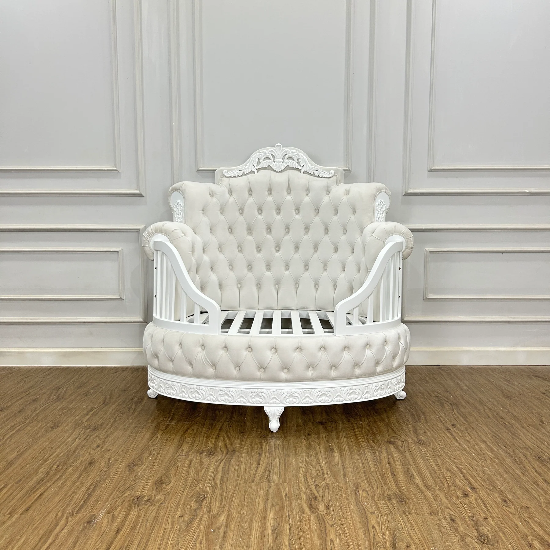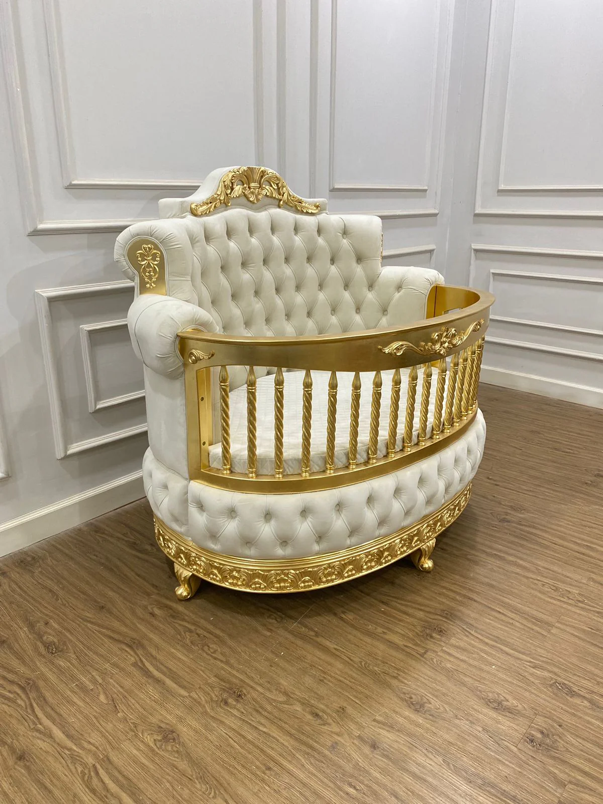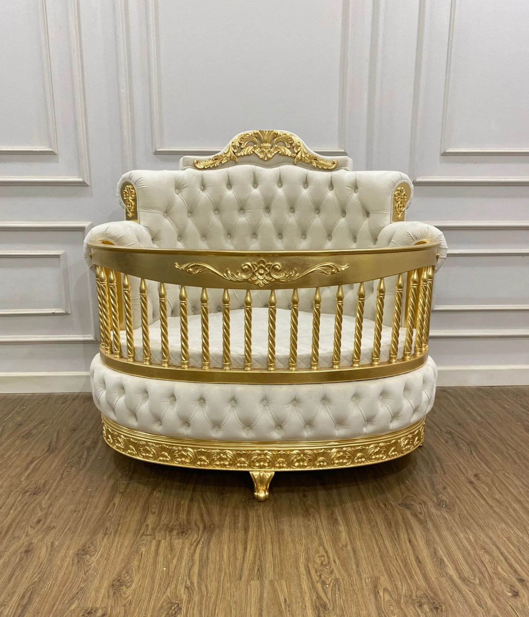 With the Quinn Regal cot you get a totally different look! An oval shaped cot (mattress included) with a sofa style back which creates a stunning design but also a cosy resting place for your little one.