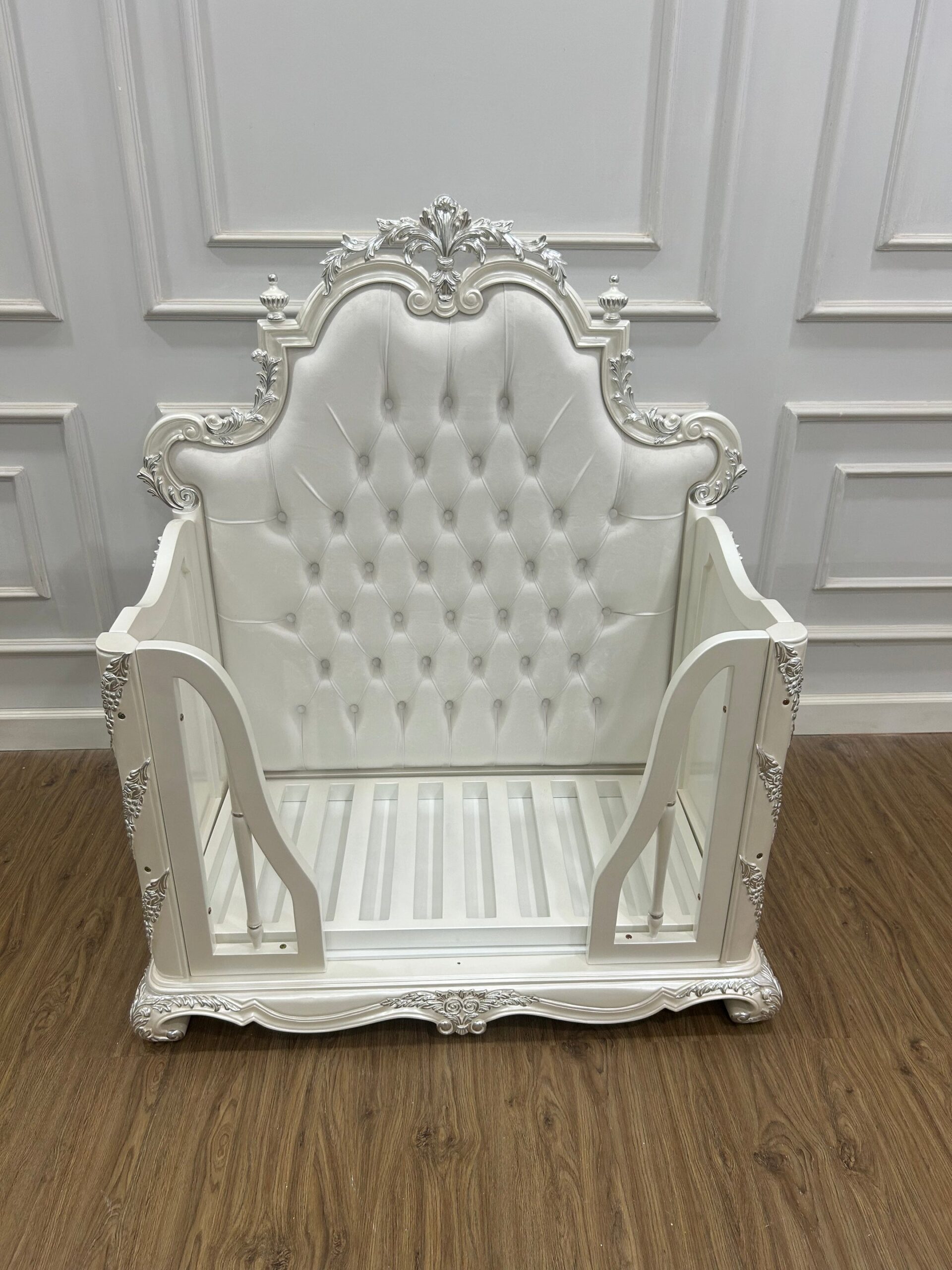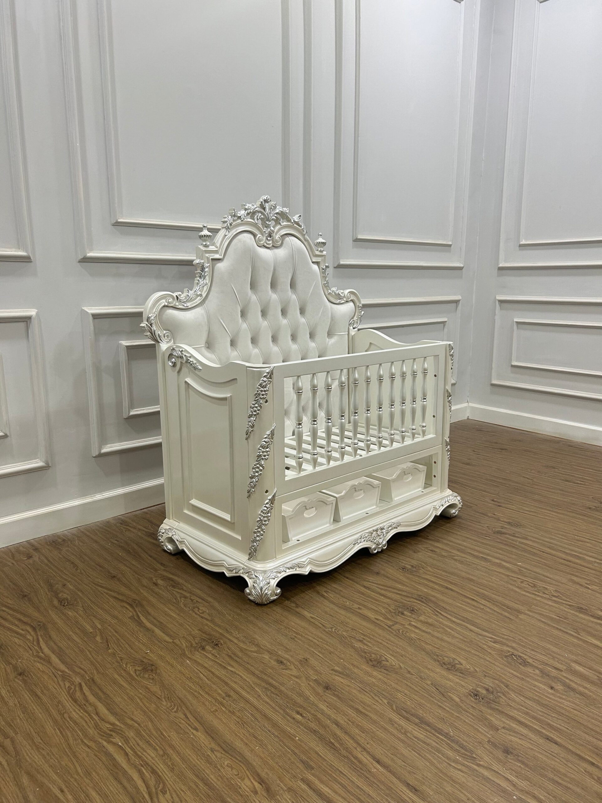The Roka Mini Cot combines detail with elegance in a perfect match. Ideal for a smaller space, the mini cot can also double up as a toddler bed in the future.